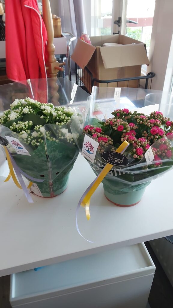 Het is volop lente en dus hebben de deelnemers aan de dagbesteding van Ontmoetingspark de Greune op uitnodiging van de afdeling welzijn van Het Saalmerink weer iets moois bedacht. Vandaag zijn er bij het ontmoetingspark plantjes keurig ingepakt en voorzien van een sticker van de Vrienden van Het Saalmerink . Bij alle bewoners staat er nu een fleurig plantje op de tafel.